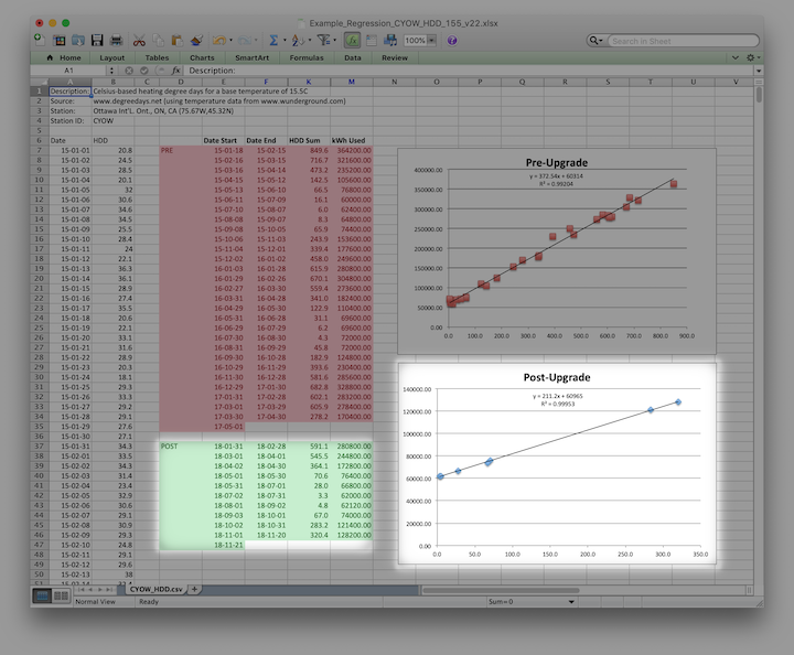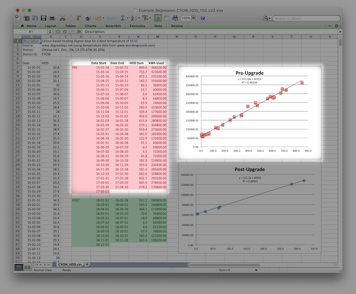 This document will explain how to use Linear Regression Analysis to validate and quantify the results of energy saving modifications to building heating systems.