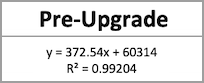 Referring again to the derived Pre and Post trendline equations: